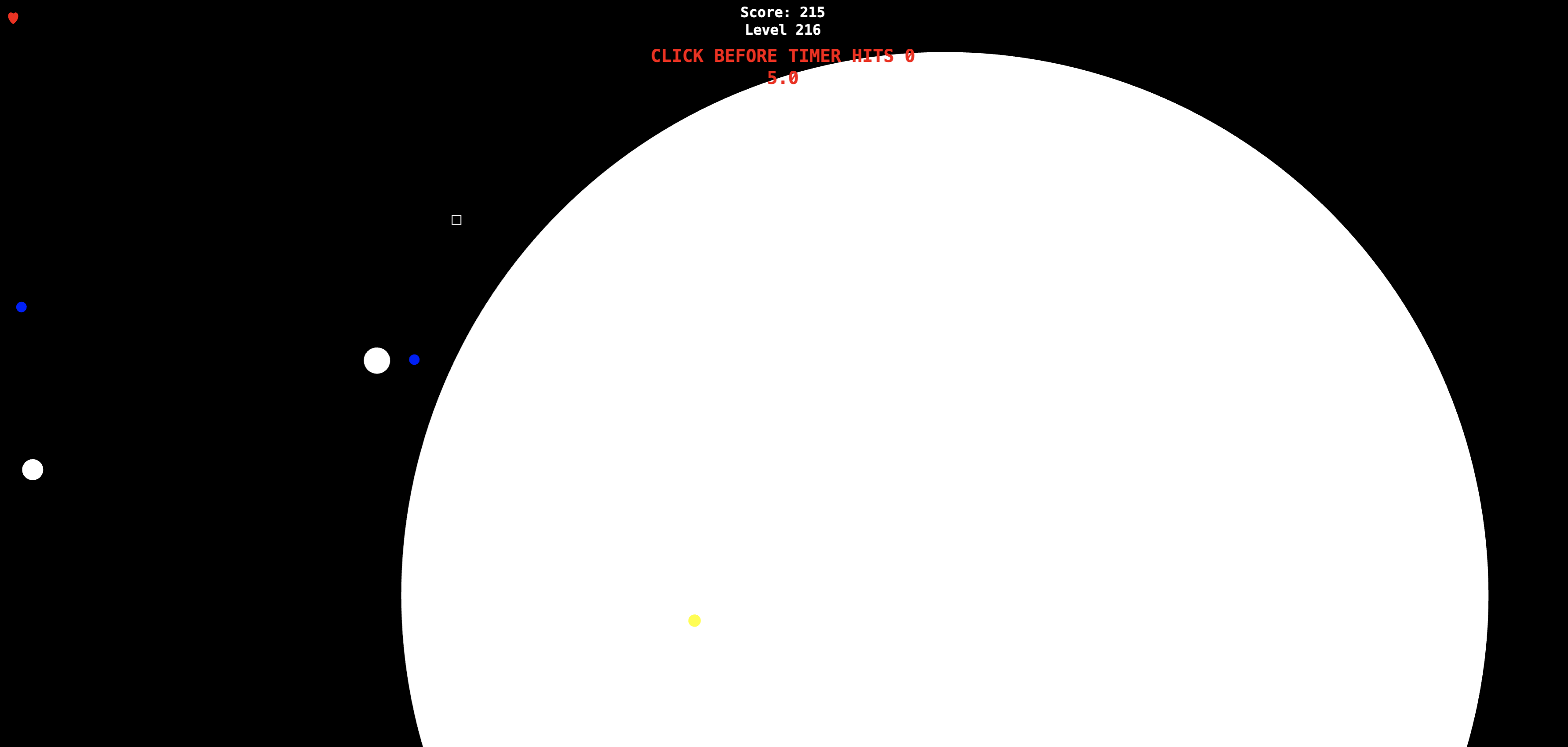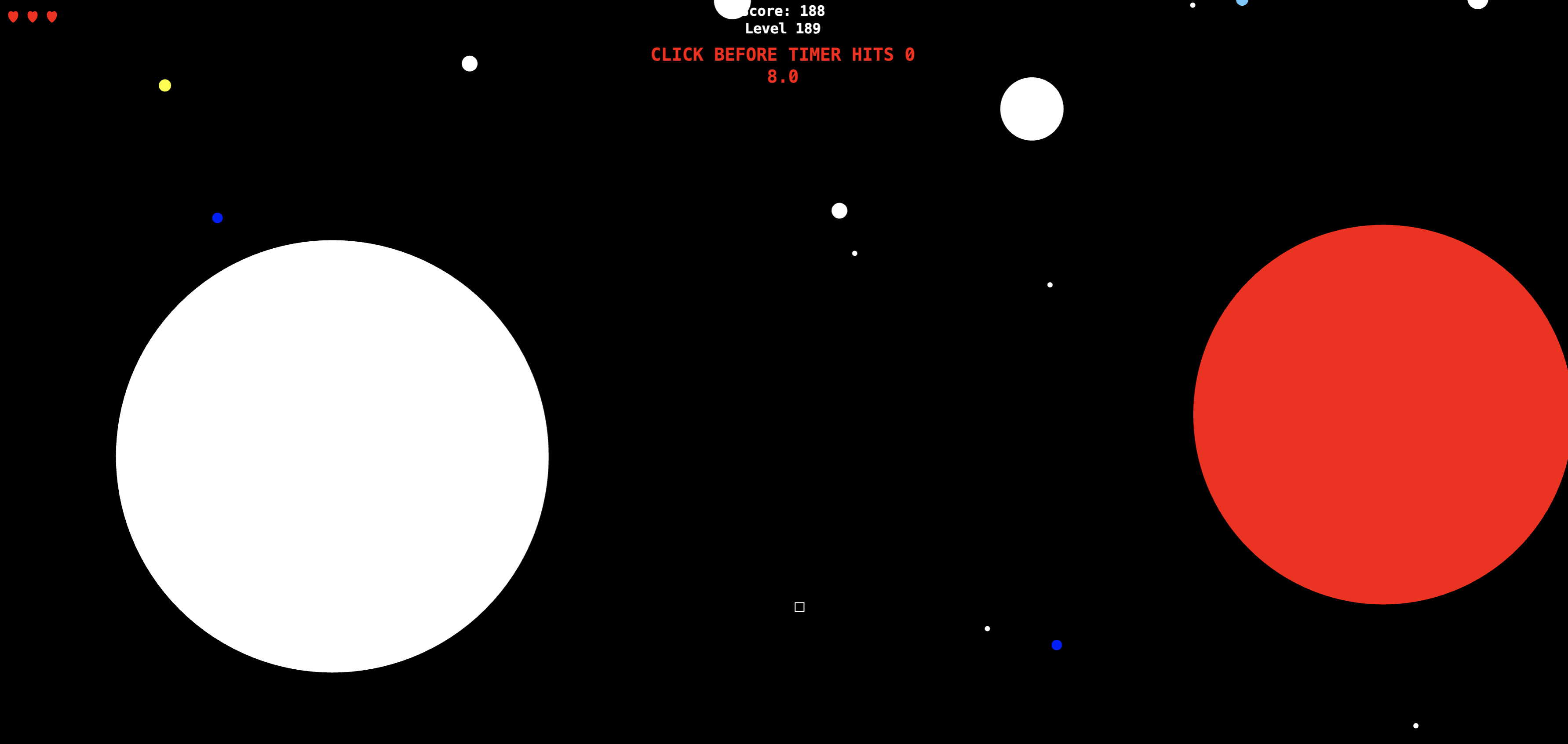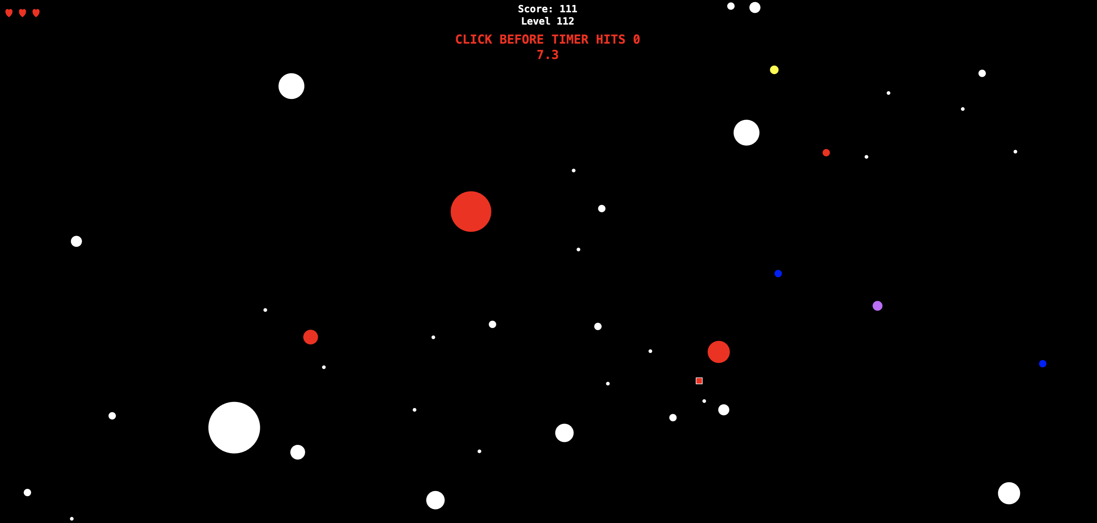Dodge the grey balls. Survive as long as possible. Different colors have different effects. Click before the timer hits ZERO.